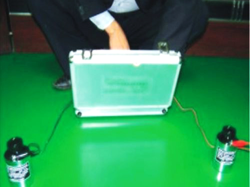 ⑦防靜電面漆:防靜電自流平地坪漆鏝一道或滾涂面二道,其體積/表面電阻平均系數值105Ω~109Ω,完工后整體地面光亮潔凈,顏色均一,無空鼓;